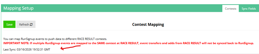 On the RunSignup RACE RESULT dashboard under Additional Field Mapping, the last sync timestamp indicates when the last participant record change was sent to RACE RESULT. In addition any errors that occurred in syncing data to RACE RESULT will show in this area.