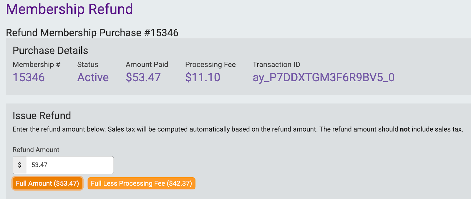 - Full Amount: The full amount (including any processing fee) that the purchaser paid for this membership.