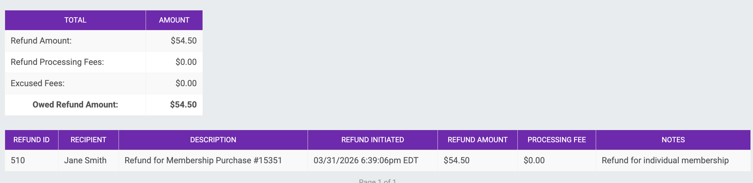 View a report of the refunds processed for your Membership Organization under Financial >> Financial Summary >> Refunds.